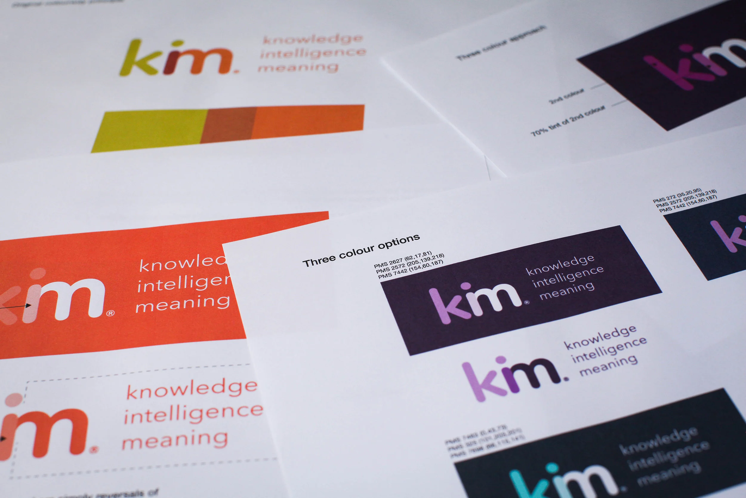 KIM = Knowledge, Intelligence, Meaning. Knowledge is pervasive, intelligence needs meaning, context provides all three. The new visual toolkit is based around the logo for KIM and the sequence of three.